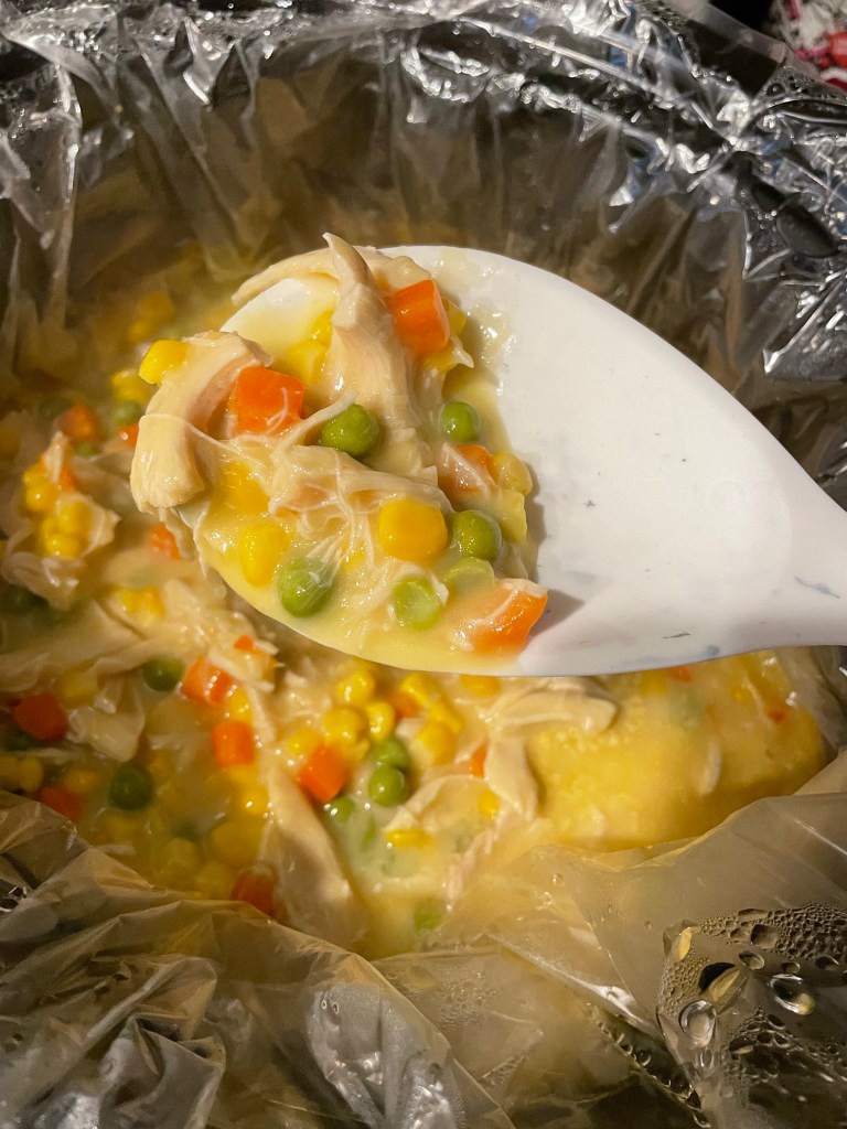 - Steam mixed veggies & add to slow cooker. Mix thoroughly.